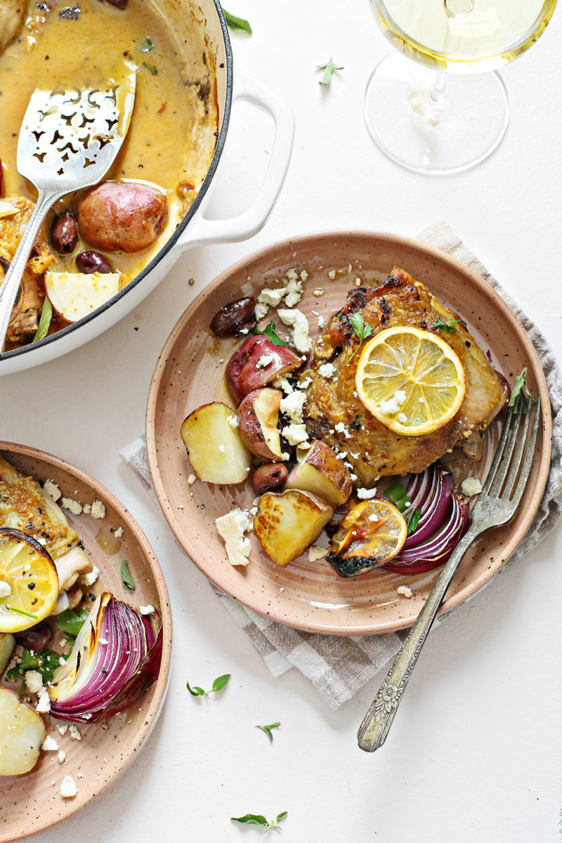 Greek Sheet Pan Chicken Dinner Downshiftology Greek Chicken Thighs Cast Iron Skillet 5 minutes minutes cook time: The only thing that stands between you and a full belly are a handful of ingredients, a cast iron skillet and less than 30 minutes! this greek chicken thighs recipe is full of simple, but robust flavors — olives, artichoke hearts, lemon, and lots of fresh garlic! leave your evening stress at the. Greek Chicken Thighs Cast Iron Skillet.